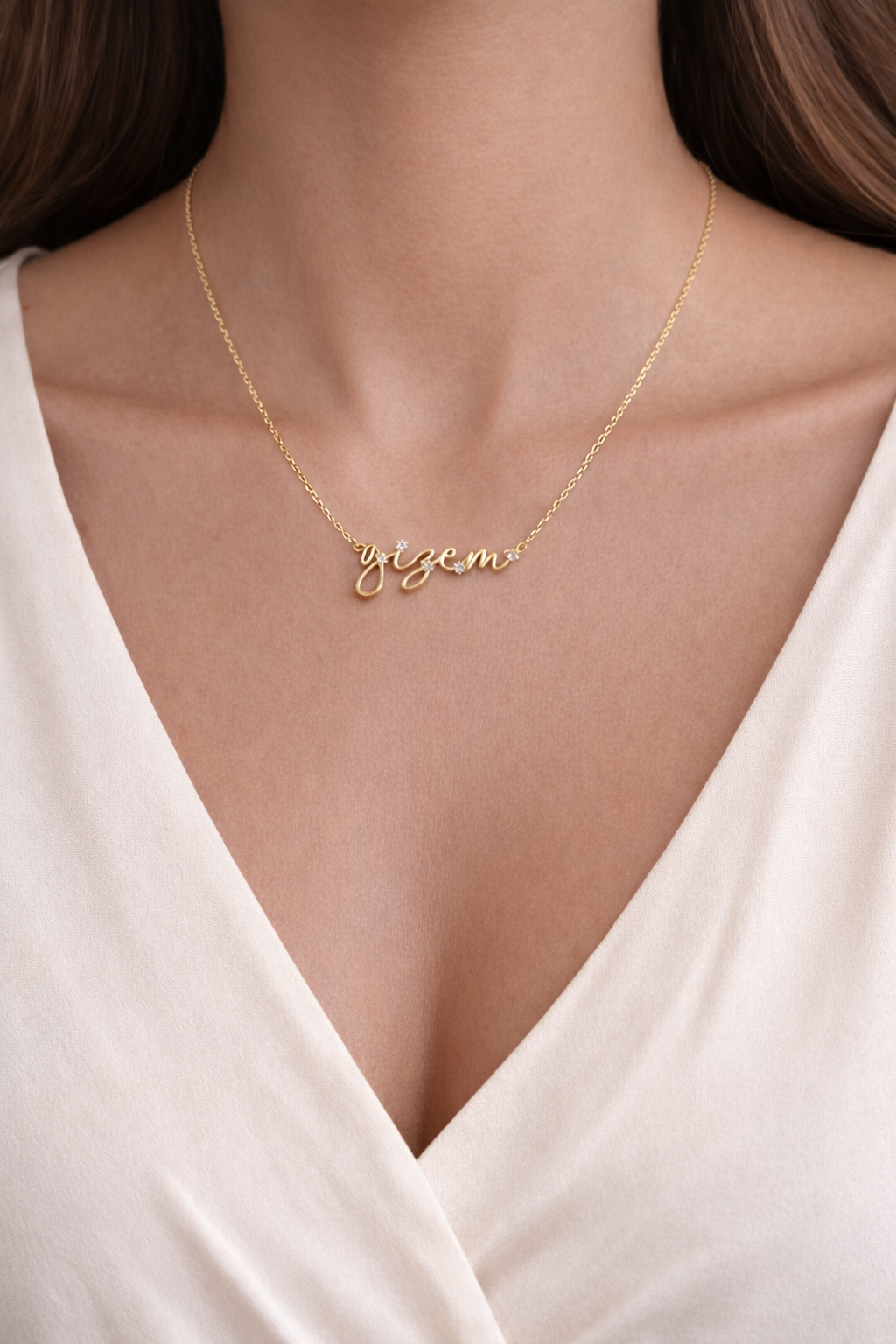 Signatur Namenskette waagerecht mit Zirkonia type